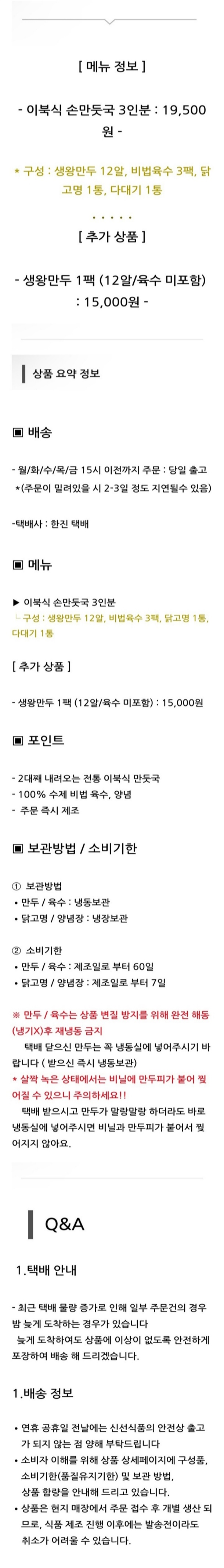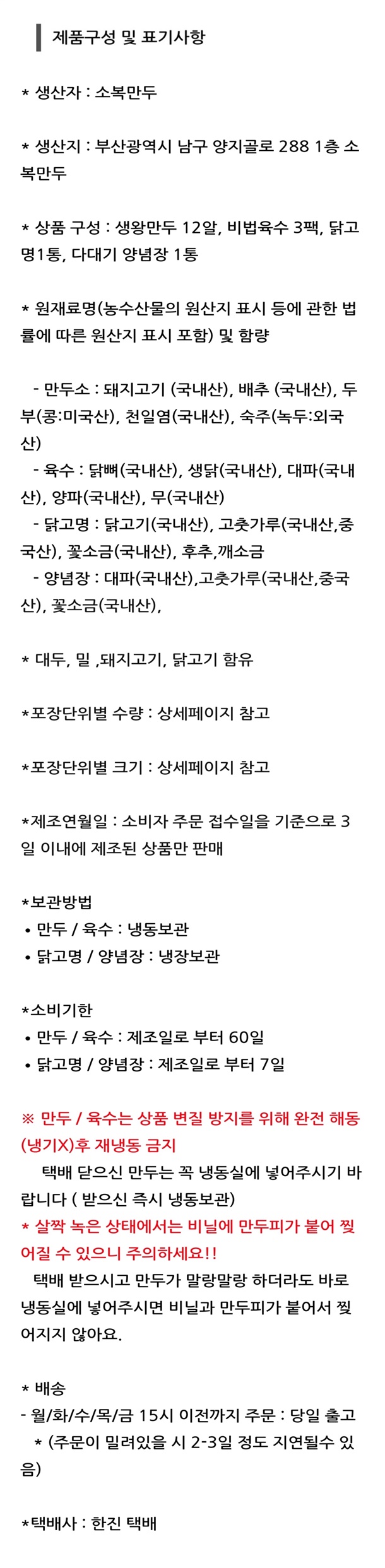 · 배송비 : 3,500원(4개 마다 기본배송비 반복 부과)