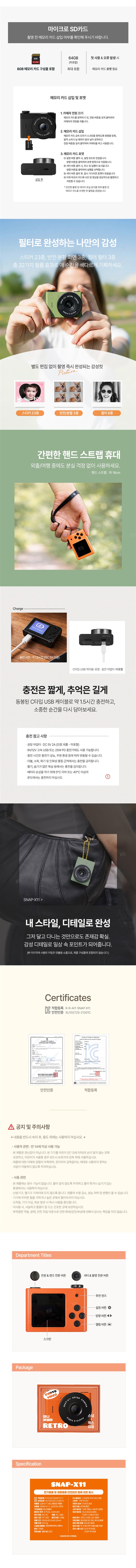 본품, 8G SD카드, 액정필름, 핸드스트랩, C타입 케이블, 설명서