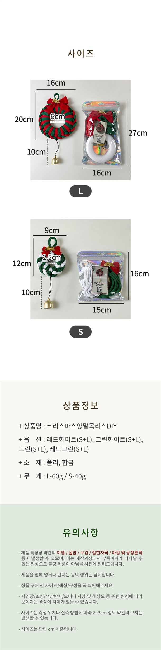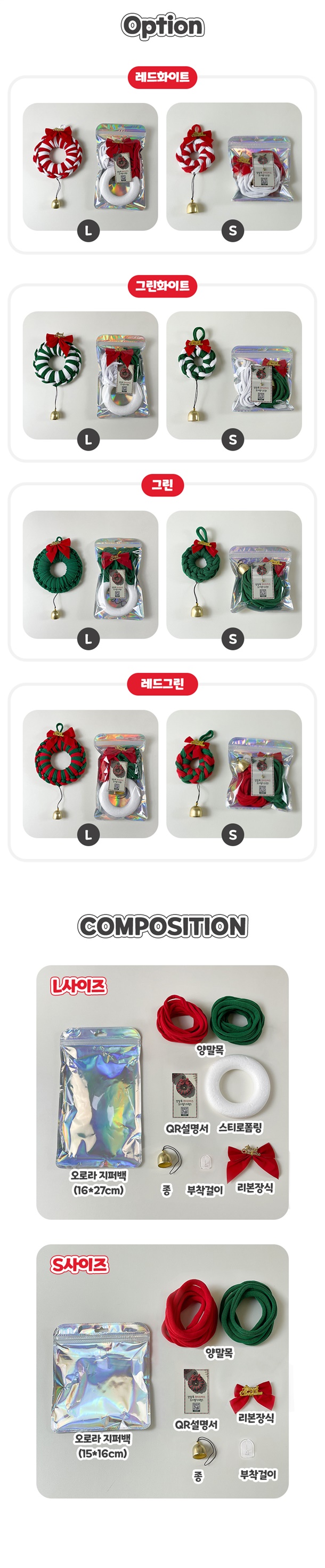 ❤️ 양말목 리스 DIY 1세트(S+L) : 직접 만드는 따뜻한 감성 인테리어![]()