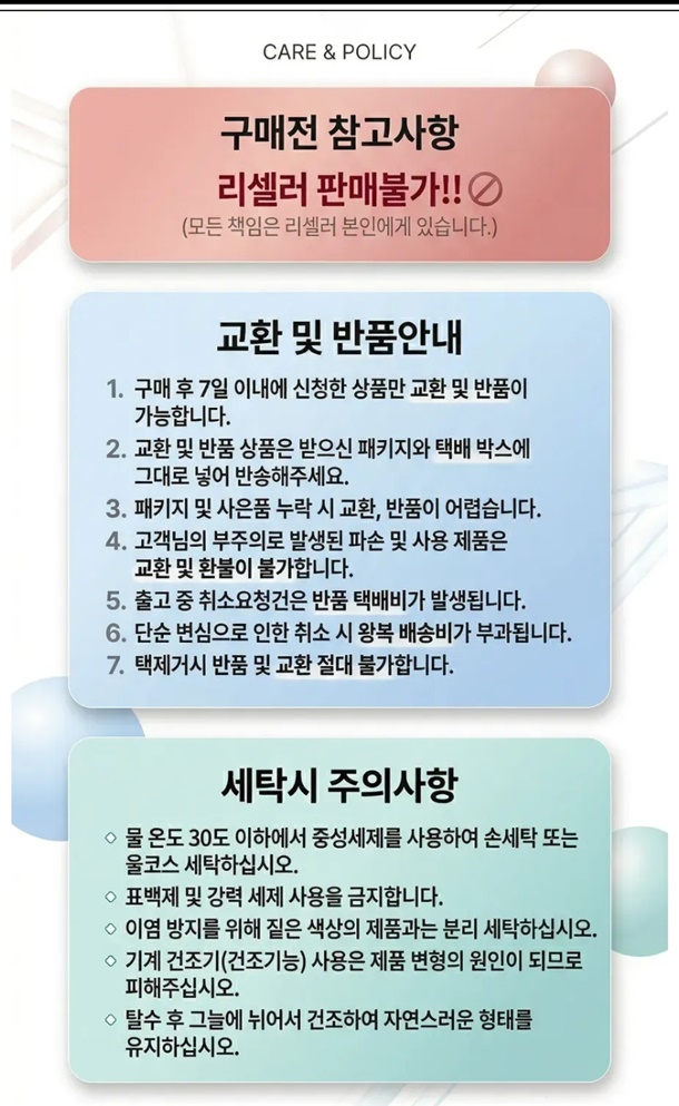 · 일부 상품에 대해서 교환/반품 정책이 위와 상이할 수 있습니다.