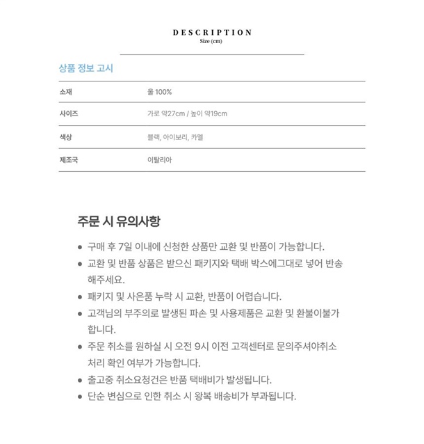 · 일부 상품에 대해서 교환/반품 정책이 위와 상이할 수 있습니다.